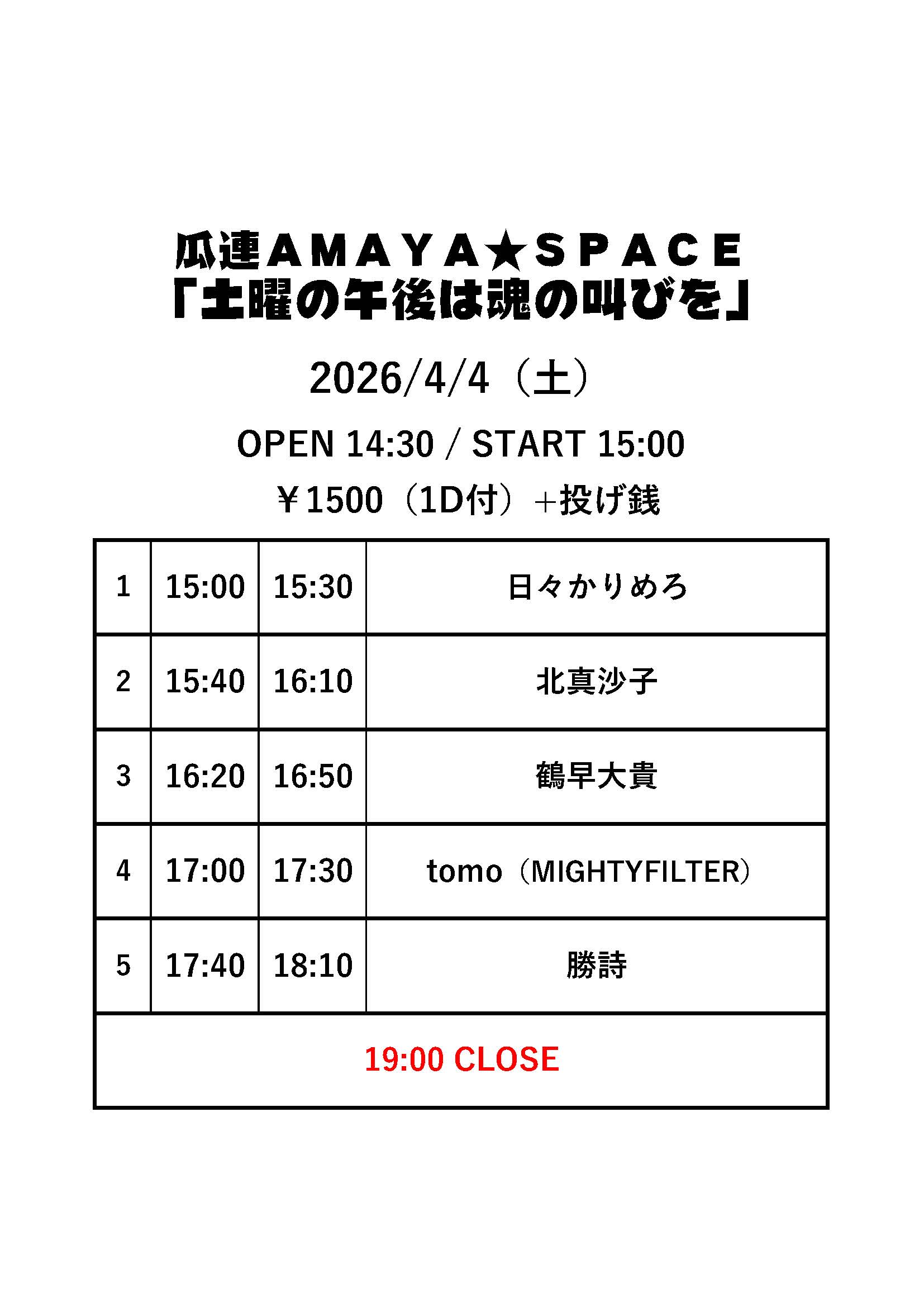 鶴早大貴 北真沙子 tomo(Mighty Filter) 勝詩 日々かりめろ